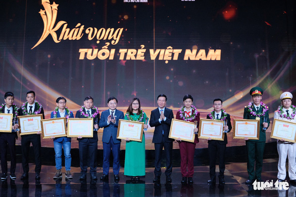 Trao giải thưởng Gương mặt trẻ Việt Nam tiêu biểu năm 2020. Ảnh: NAM TRẦN/Tuổi Trẻ Online |