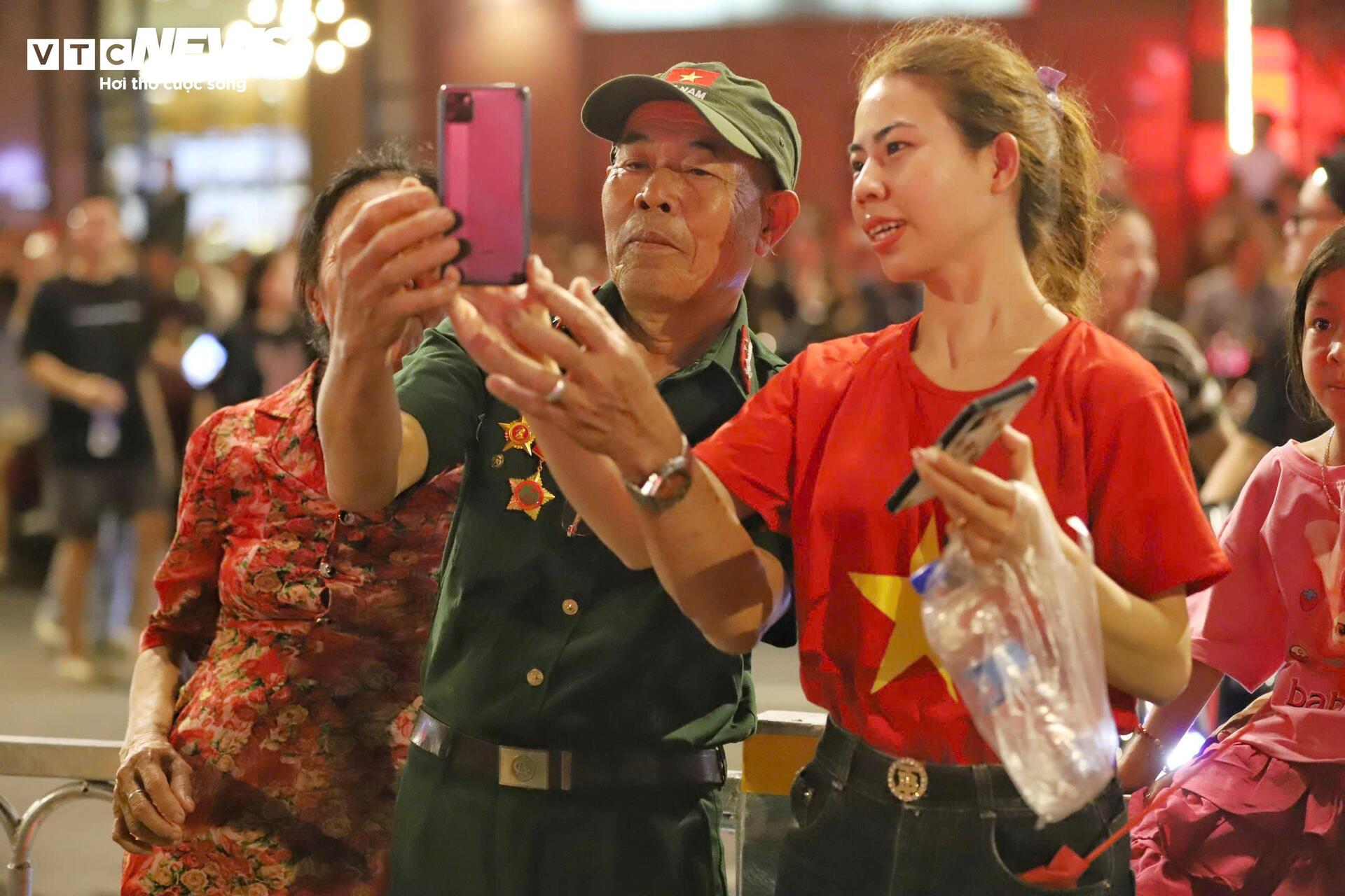 | Nhiều người dân háo hức cầm cờ, mặc trang phục cờ đỏ sao vàng tới xem buổi tổng duyệt. Ảnh: Lương Ý/VTCnews |