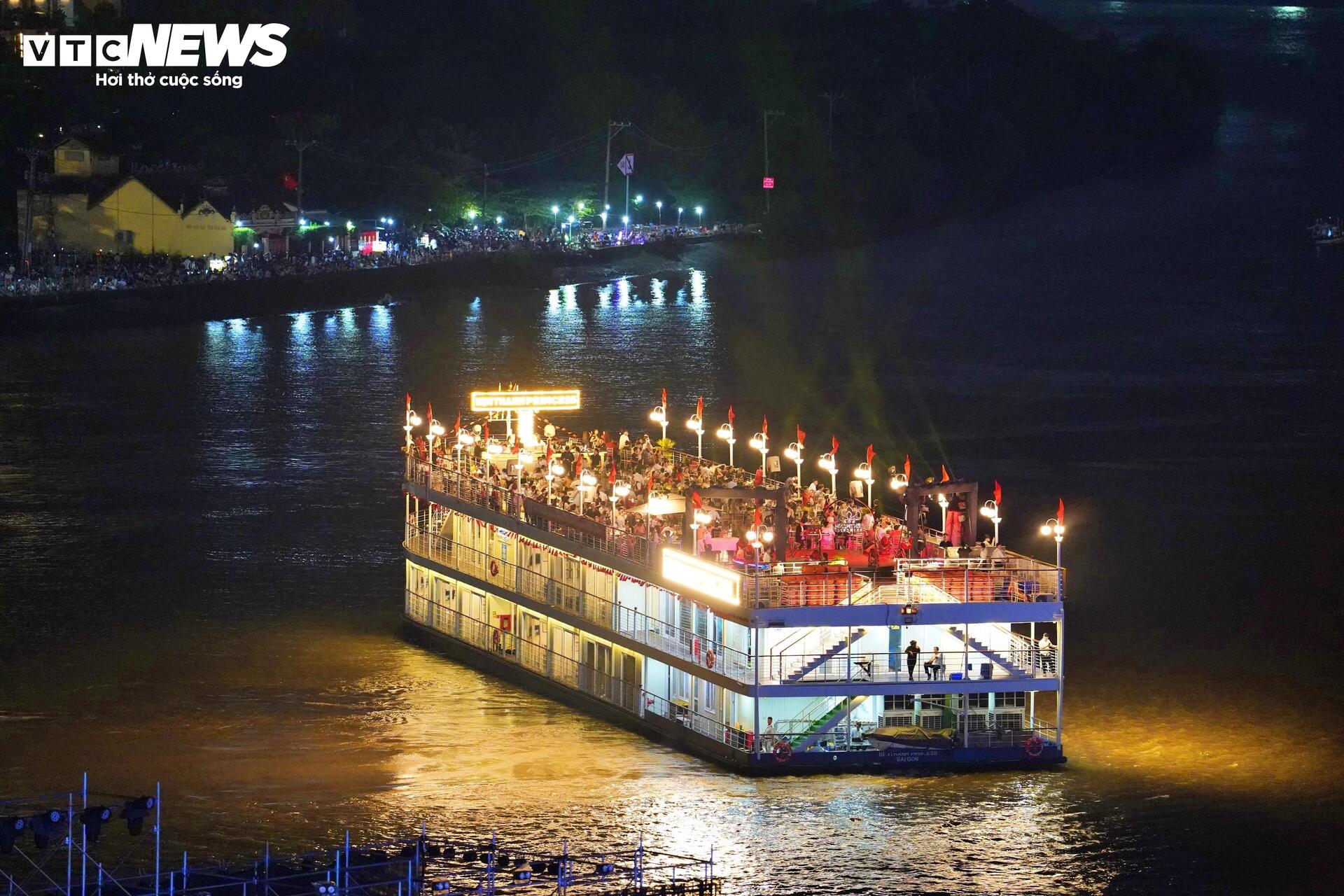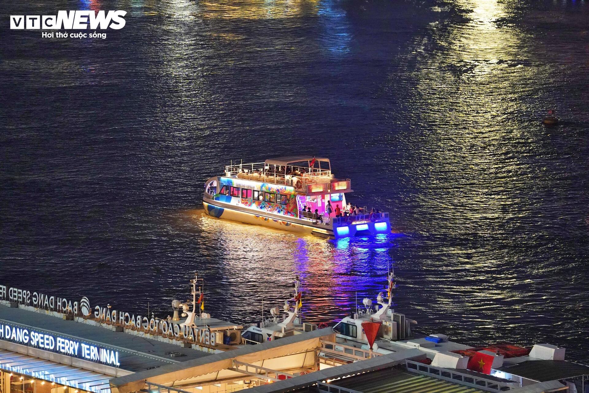| Một số người dân đặt chỗ trên các tàu du lịch ở khu vực bến Bạch Đằng để xem 10.500 drone trình diễn. Ảnh: Lương Ý/VTCnews |