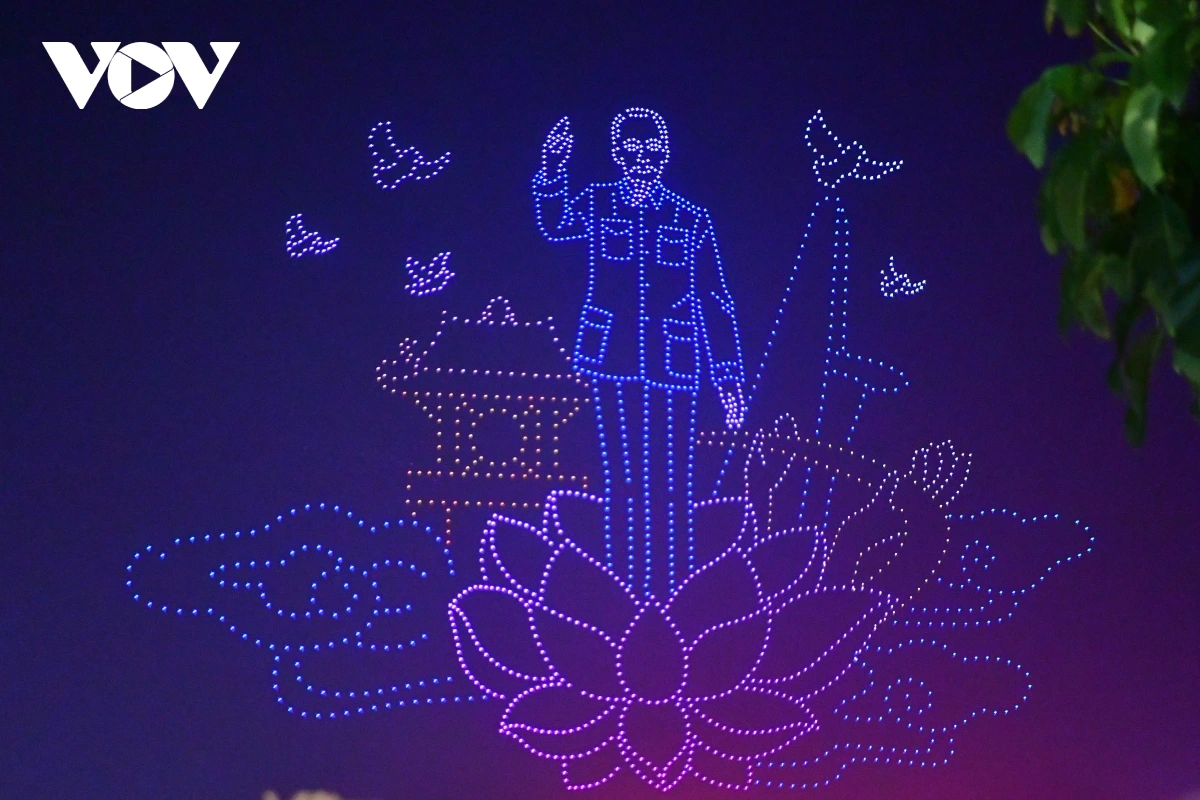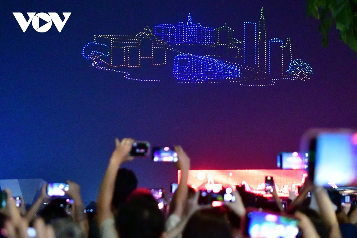 | Màn trình diễn của 10.500 drone là sự kiện được mong chờ nhất trong chuỗi hoạt động “Sắc màu Thành phố Bác”, diễn ra từ ngày 19/4 đến hết tháng 5, kỷ niệm 50 năm Ngày Giải phóng miền Nam, thống nhất đất nước (30/4/1975 - 30/4/2025). Ảnh: Lương Ý/VTCnews |