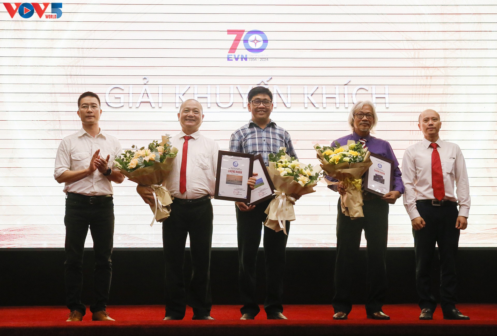 | Đây là kết quả từ cuộc thi ảnh chào mừng kỷ niệm 70 năm ngày Truyền thống ngành Điện lực Việt Nam (21-12-1954 / 21-12-2024) do Tập đoàn Điện lực Việt Nam (EVN) phối hợp với Hội Nghệ sĩ Nhiếp ảnh Việt Nam tổ chức. Trong số 150 tác phẩm được chọn trưng bày tại triển lãm có 11 tác phẩm đạt giải |