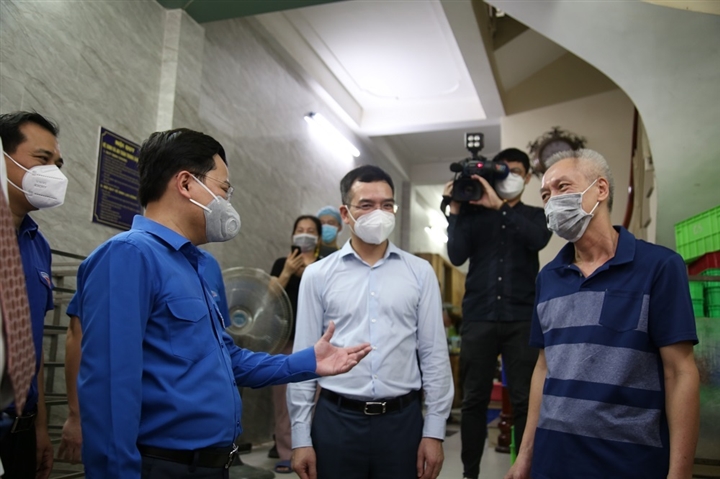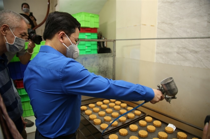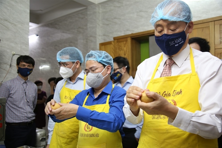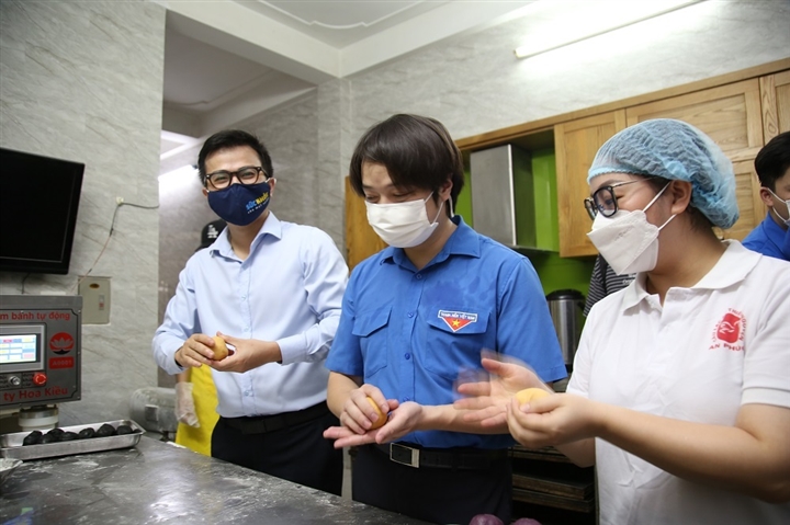 Ông Nguyễn Anh Tuấn - Ủy viên BCH Trung ương Đảng, Bí thư thứ nhất Trung ương Đoàn; ông Kidong Park - Giám đốc văn phòng đại diện WHO tại Việt Nam; ông Hà Anh Đức - Chủ tịch Hội Thầy thuốc trẻ Việt Nam, Chánh Văn phòng Bộ Y tế cùng làm những chiếc bánh cuối cùng trước khi gửi chuyển đến các y bác sĩ tình nguyện trên địa bàn Hà Nội.