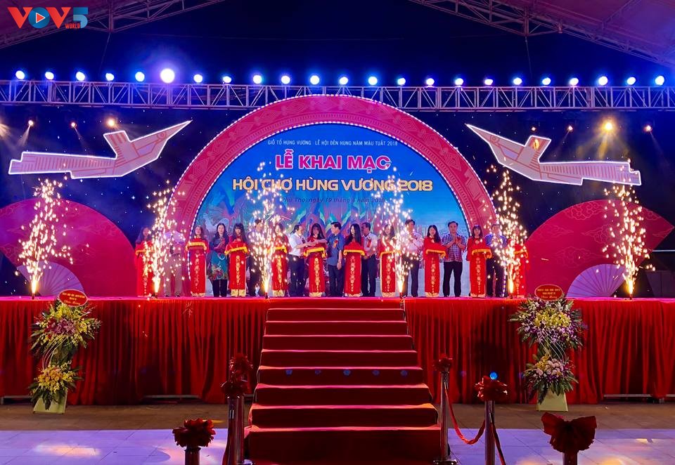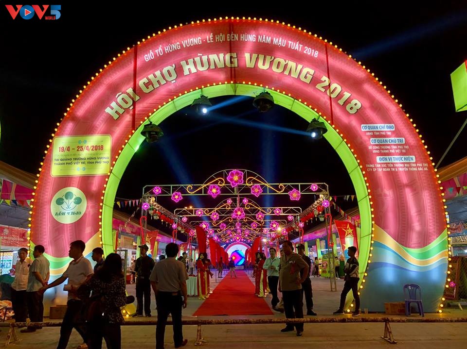 (VOV5) -Hội chợ Hùng Vương 2018 khai mạc tối 19/4, tại Trung tâm quảng trường Hùng Vương, thành phố Việt Trì, tỉnh Phú Thọ. Đây là một trong các hoạt động trong khuôn khổ Lễ hội Đền Hùng 2018, do Sở Công thương tỉnh Phú Thọ, Trung tâm xúc tiến tỉnh Phú Thọ tổ chức nhằm xúc tiến chương trình thương mại trên địa bàn tỉnh.