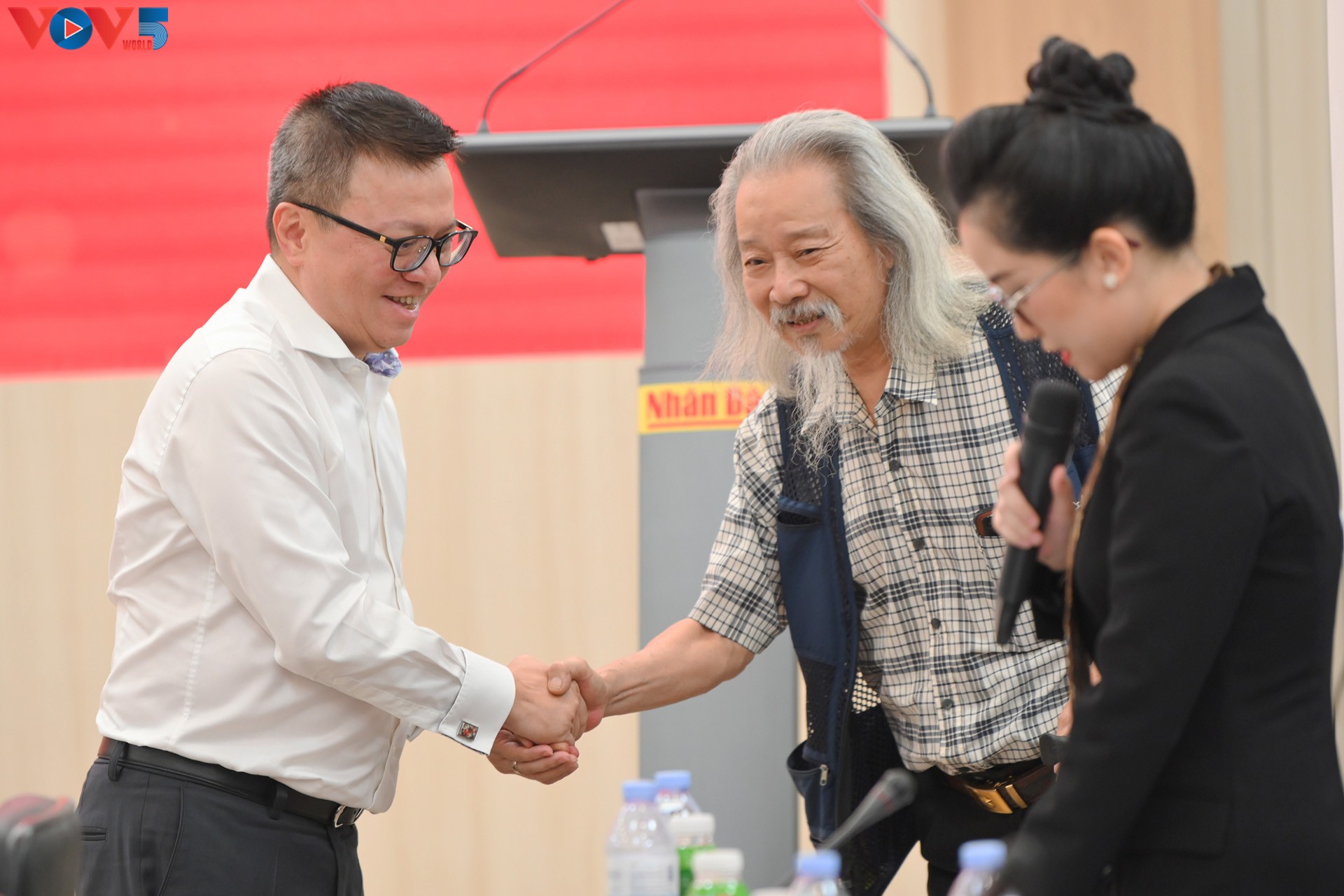 | Nhạc sỹ, hoạ sỹ Văn Thao phát biểu tại lễ công bố |