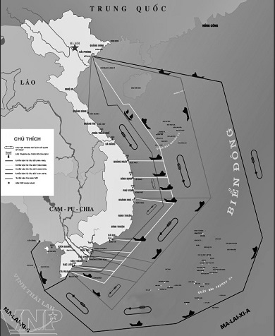 Bản đồ mô tả hành trình của những chuyến tàu chi viện bằng đường Hồ Chí Minh trên biển (Ảnh tư liệu) |