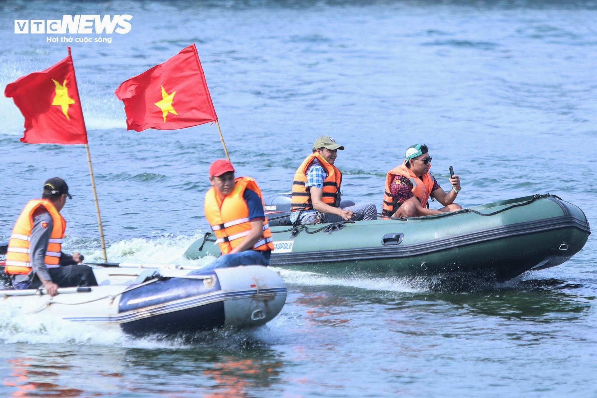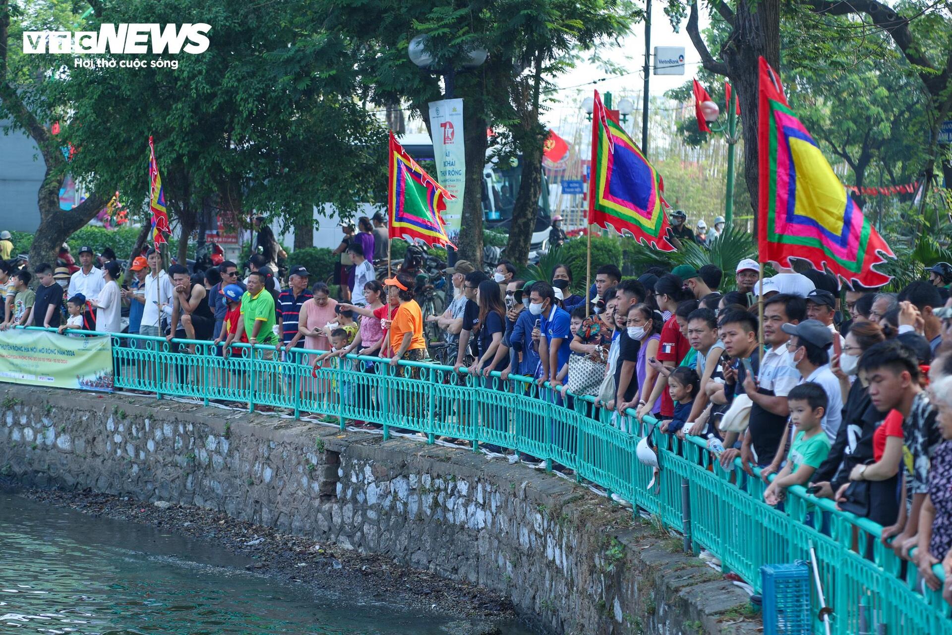 Người dân và du khách đứng chật kín khu vực Hồ Tây để theo dõi và cổ vũ các đội đua. |