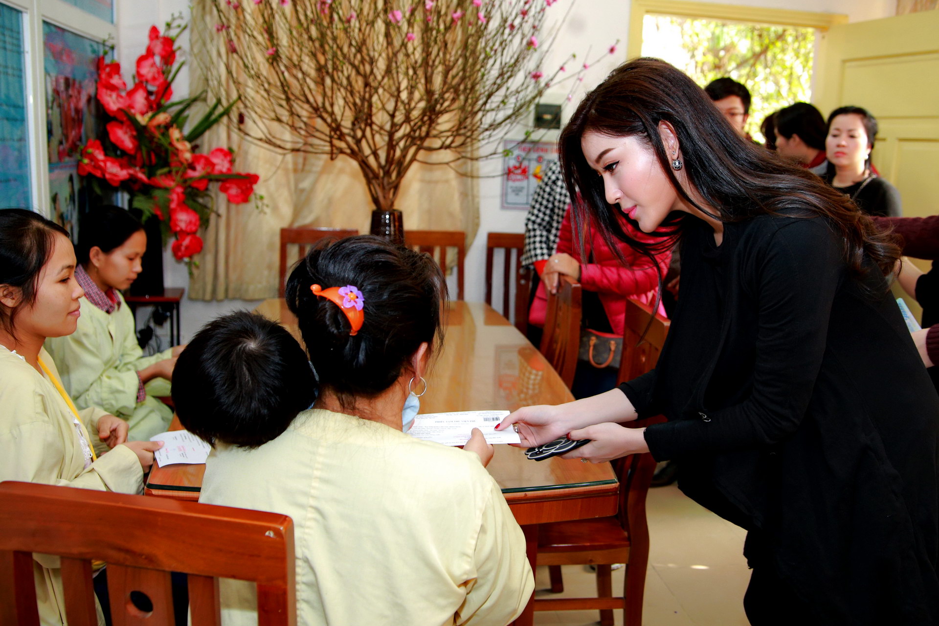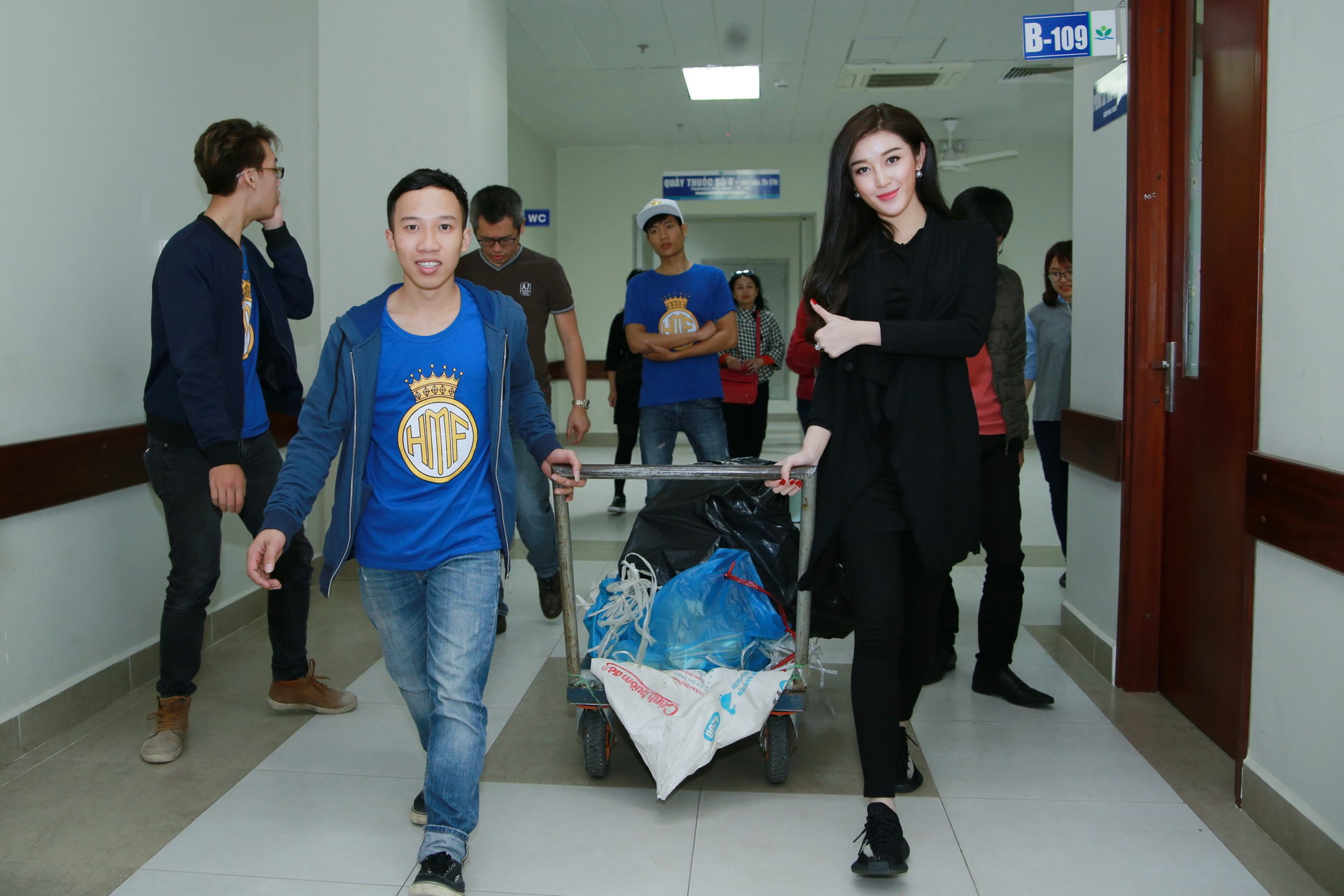 Sáng 24/01/2017 (27 Tết), Á hậu Huyền My cùng gia đình và các thành viên trong Fanclub (FC) xuất hiện tại bệnh viện từ sớm. Á hậu mặc cả ‘cây đen’ giản dị nhưng vẫn xinh đẹp và rạng rỡ với nụ cười thường trực trên môi.