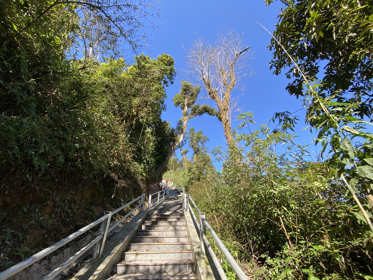 Đi bộ hết đường bê tông là cầu thang 500 bậc dẫn lên cột mốc.