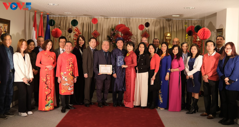 Các đại biểu chụp ảnh lưu niệm nhân sự kiện Xuân Quê hương 2022 tại Hà Lan |