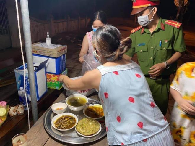 Người dân bưng cả mâm cơm nhà ra mời các chiến sĩ chốt kiểm soát dịch. ( Ảnh: Fanpage Đà Nẵng). |