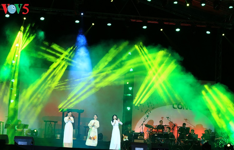Cuối đêm nhạc, tất cả cùng hát vang ca khúc “Nối vòng tay lớn” bất hủ của cố nhạc sĩ Trịnh Công Sơn. |