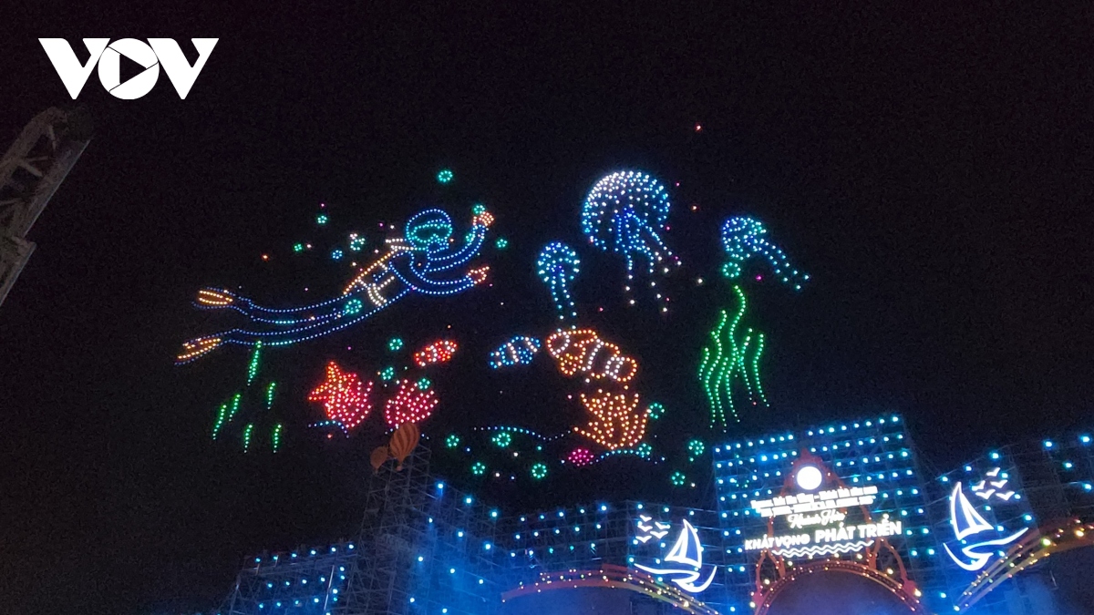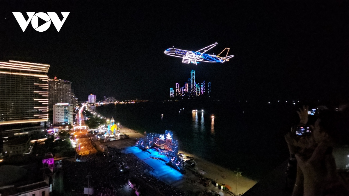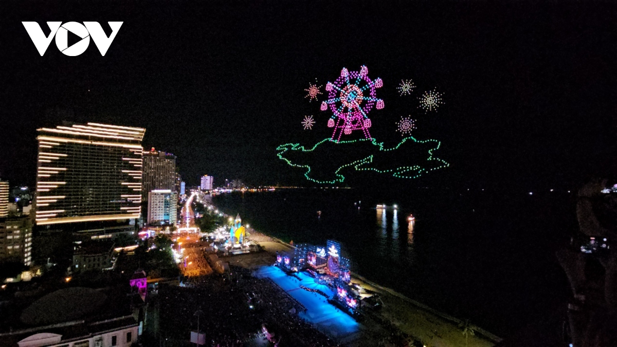 Đặc biệt tại lễ khai mạc, lần đầu tiên 1.653 phương tiện bay không người lái trình diễn màn nghệ thuật ánh sáng trên bờ biển Nha Trang cực kỳ ấn tượng.