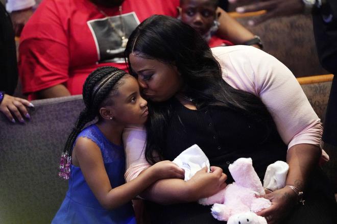 Bạn gái và con gái của George Floyd tới tham dự tang lễ của anh hôm 9/6. Floyd qua đời sau khi bị cảnh sát Minneapolis ghì cổ cho tới chết. Cái chết của người đàn ông da màu này làm dấy lên làn sóng biểu tình mạnh mẽ trên khắp nước Mỹ. Ảnh: Getty Images |