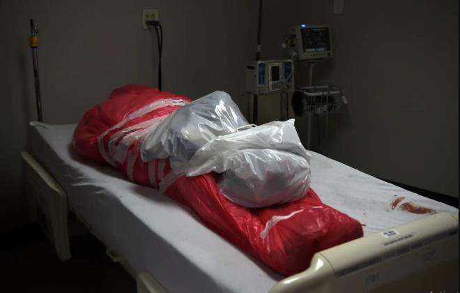 Thi thể người đàn ông chết vì COVID-19 bọc trong túi đựng thi thể tại phòng chăm sóc đặc biệt của Trung tâm Y tế United Memorial, Houston (Mỹ) hôm 29/6. Ảnh: Reuters |