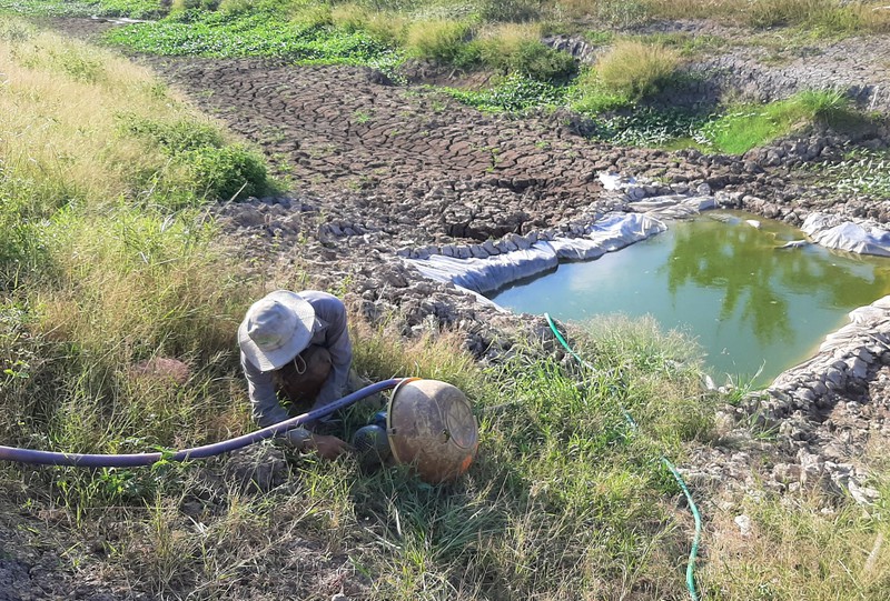 Người dân đang “mót” từng chút nước mong vớt vát vụ mùa.