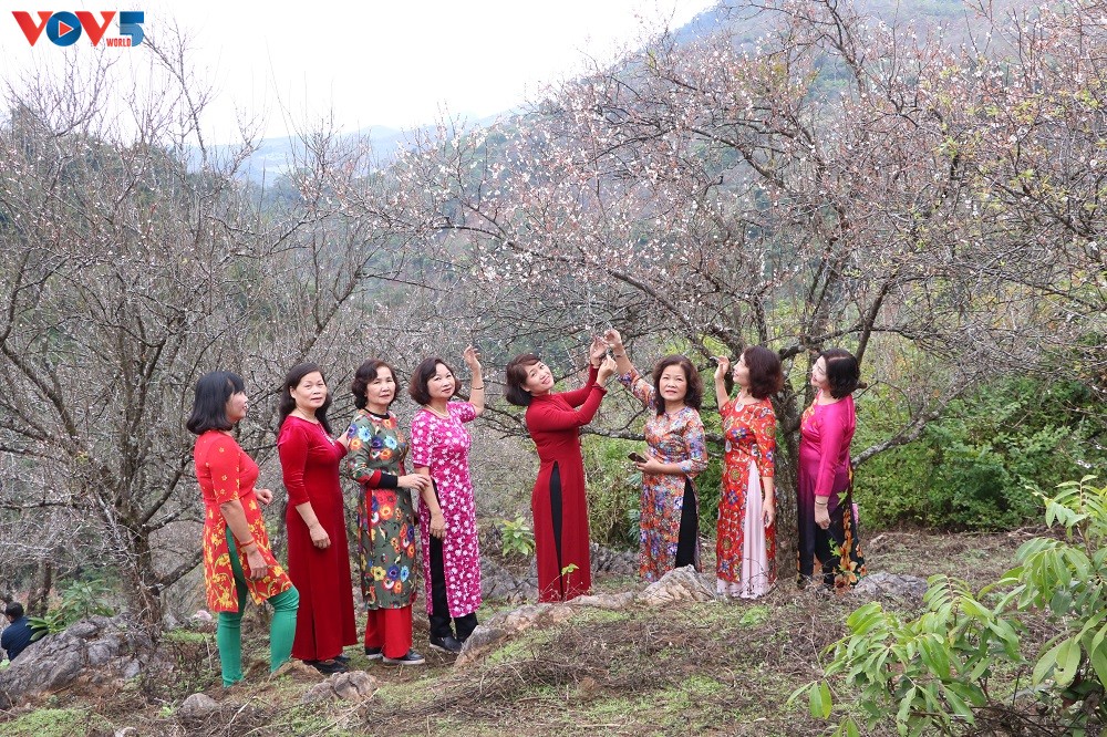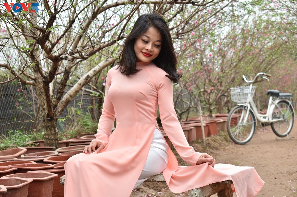 Chỉ còn vài ngày nữa là đến Tết Nguyên đán Kỷ Hợi 2019, khắp mọi nẻo đường đã ngập tràn không khí rộn ràng đón chào năm mới. Các vườn hoa ở Nhật Tân tấp nập người qua lại không chỉ để mua đào mà còn để chụp hình, ghi lại những khoảnh khắc mùa xuân trong tà áo dài truyền thống.
