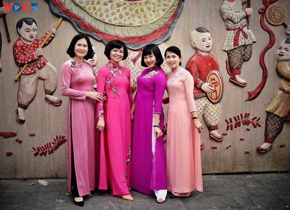 Chiếc áo dài Việt Nam đầy nữ tính và gợi cảm. Vẻ đẹp mềm mại, dịu dàng và kín đáo của chiếc áo dài Việt Nam được thể hiện bằng cổ cao, bờ vai tròn trịa mềm mại với hai tà áo thướt tha luôn là sự lựa chọn của nhiều chị em khi Tết đến xuân về.