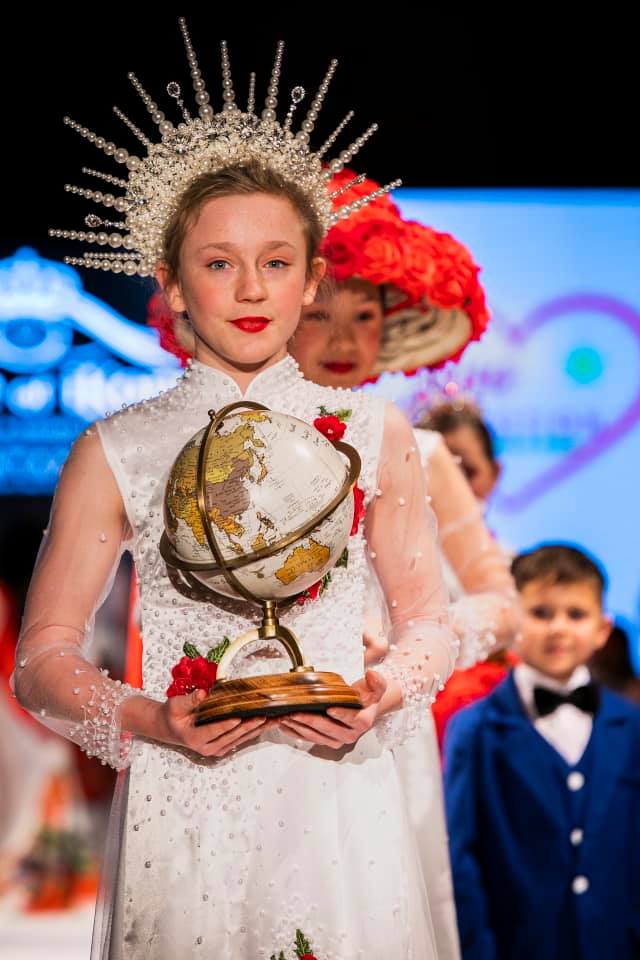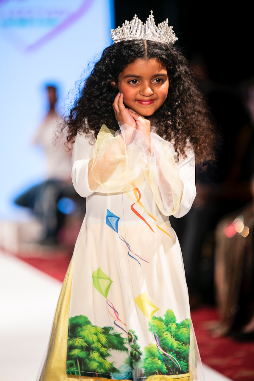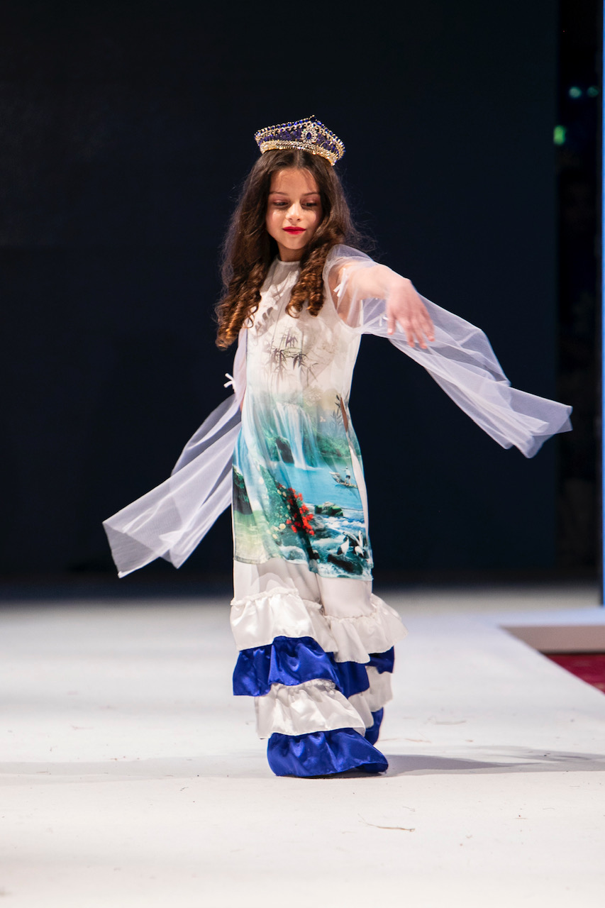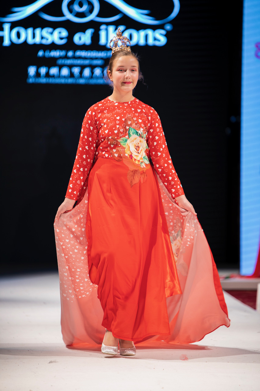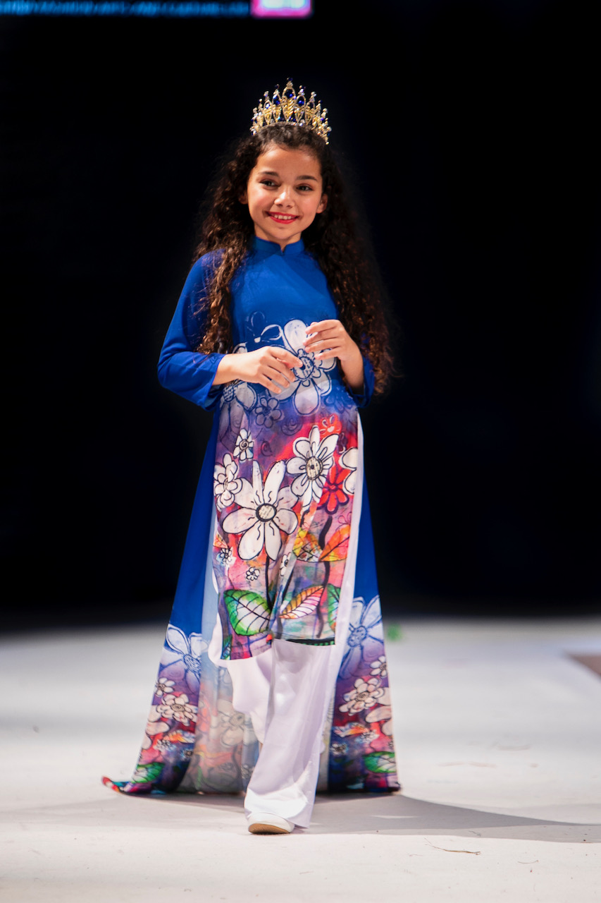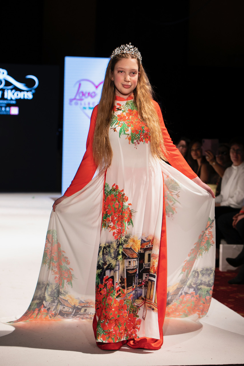 26 người mẫu nhí quốc tế trình diễn các bộ trang phục áo dài Việt Nam lấy ý tưởng từ văn hóa truyền thống Việt và Phong cách Hoàng gia Anh.