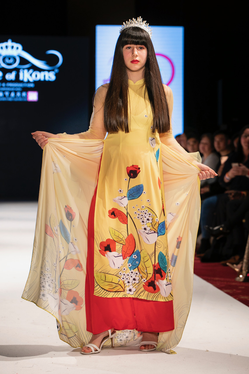 Tại sàn diễn nhí House of iKons Fashion Week London vừa qua, Bộ sưu tập áo dài xuất hiện ở vị trí Grand Final Show của 2 cô bé Việt Nam - UK là Emily Nguyễn 13 tuổi và Anna Hoàng 10 tuổi đã hoàn toàn chinh phục trái tim khán giả bởi thông điệp chia sẻ yêu thương trên toàn thế giới.