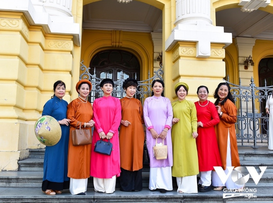 Cùng xuống phố với những tà áo dài thướt tha không chỉ để lưu giữ khoảnh khắc đẹp mà còn góp phần giữ gìn và lan toả tinh hoa, vẻ đẹp áo dài truyền thống – Di sản Văn hoá Việt Nam. Ảnh: Hải Bằng/VOV Giao thông |