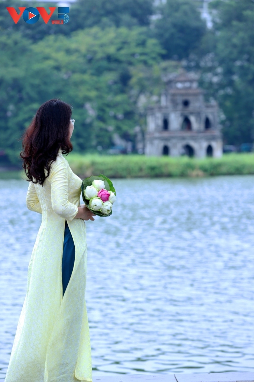 Hồ Hoàn Kiếm là một trong những địa chỉ quen thuộc của các chị em khi chụp ảnh áo dài. Ảnh: Nhân vật cung cấp |