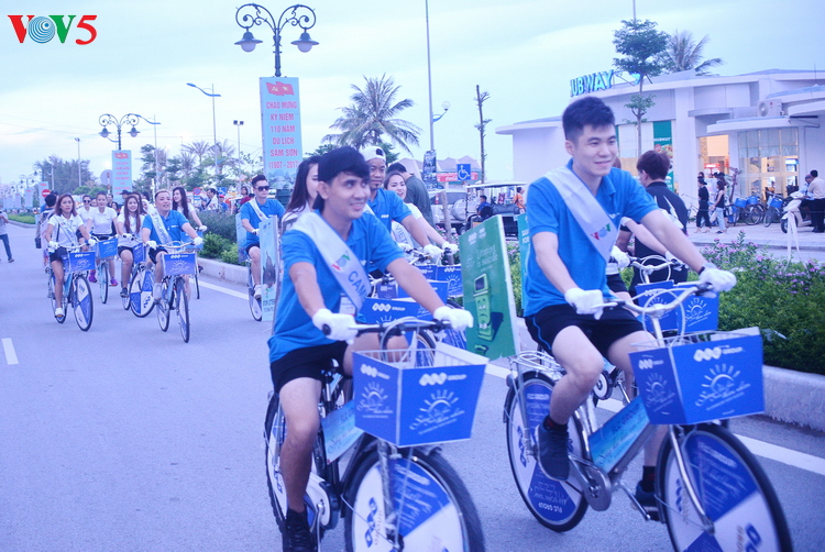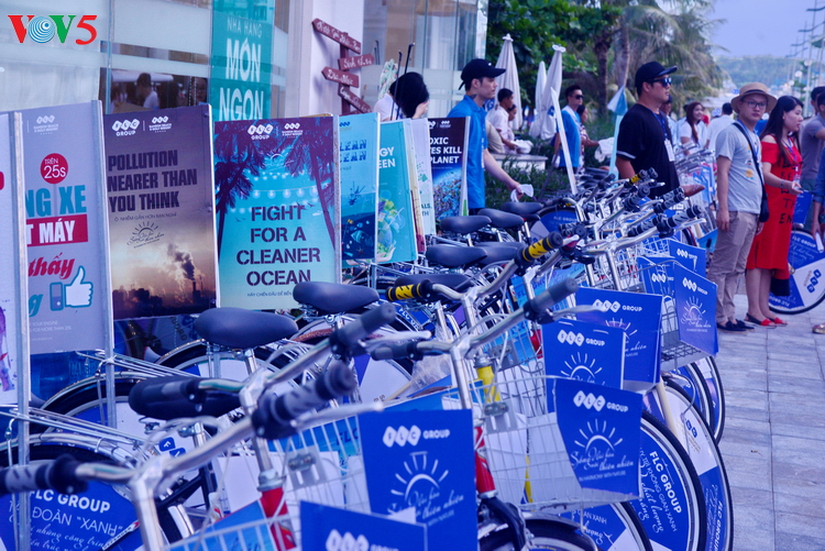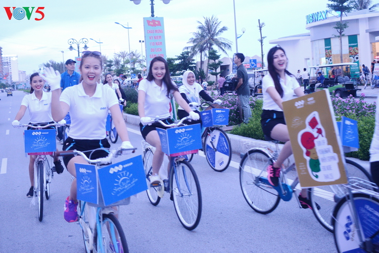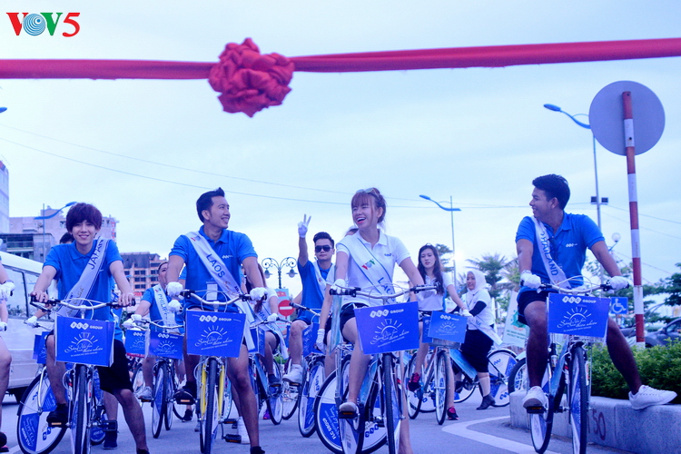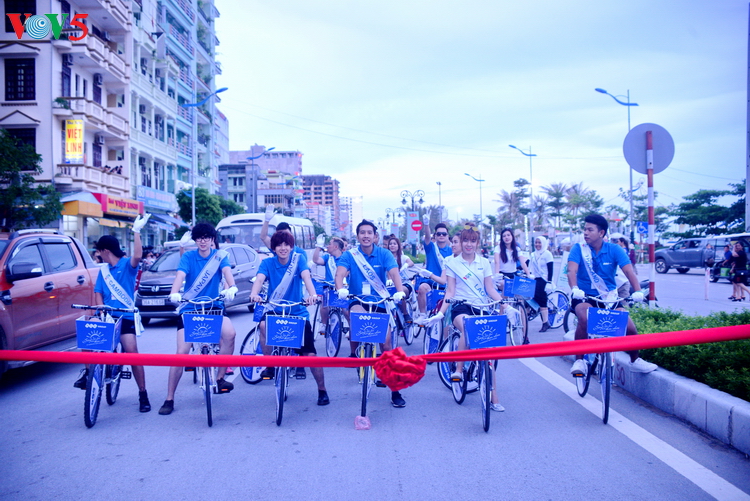 | Ngay sau đó, các thí sinh sẽ tham gia hoạt động đạp xe diễu hành, truyền tải các slogan tiết kiệm nguồn nước, bảo vệ môi trường biển.. |