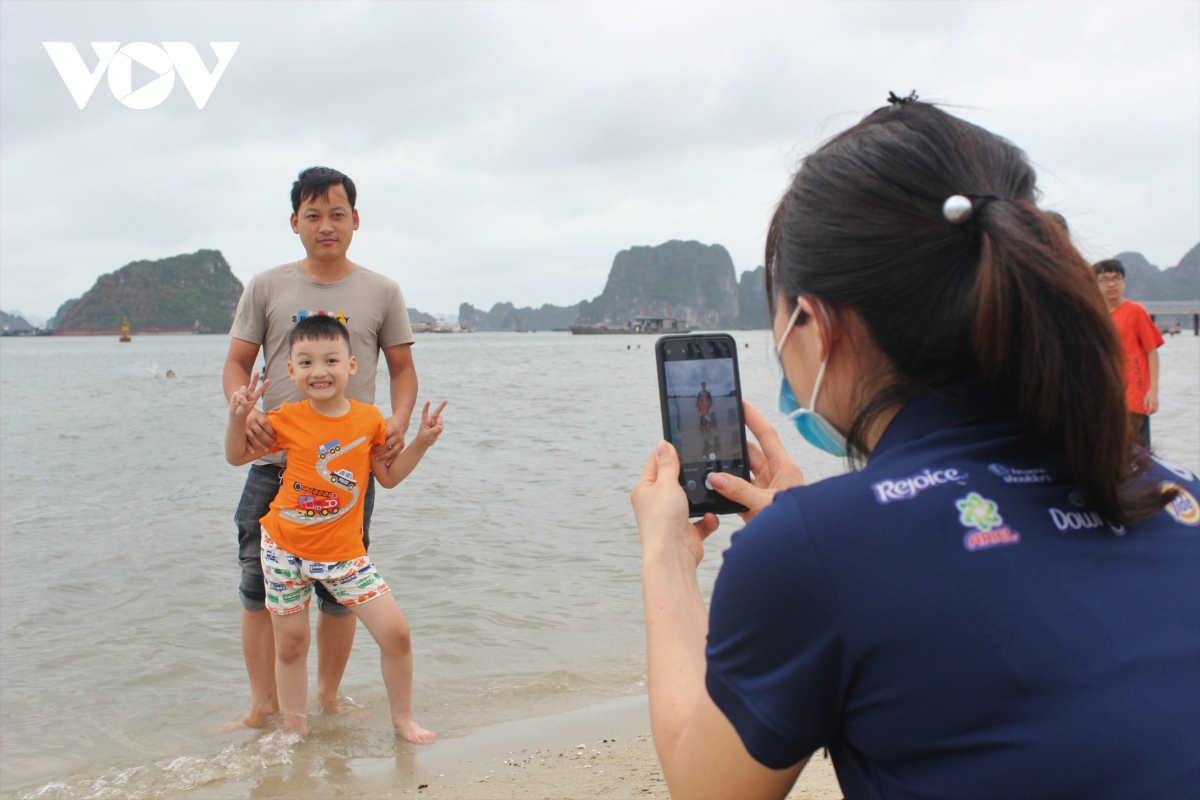Anh Hoàng Quốc Anh chia sẻ: "Ngày trước vợ chồng tôi phải di chuyển khá xa để đưa cháu sang Bãi Cháy tắm biển, nhưng bây giờ có bãi tắm ngay gần nhà rồi thì tiện rất nhiều, từ lúc biết bên này sẽ có bãi tắm là gia đình tôi rất háo hức".
