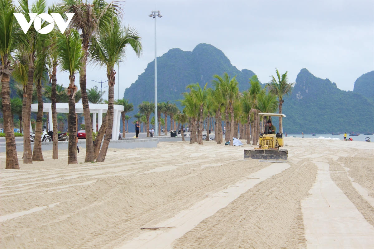Những công đoạn cuối cùng để hoàn thiện bãi tắm đang được gấp rút triển khai.