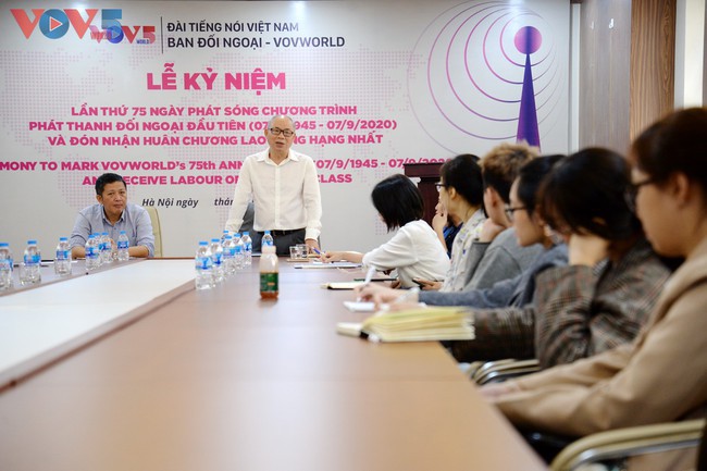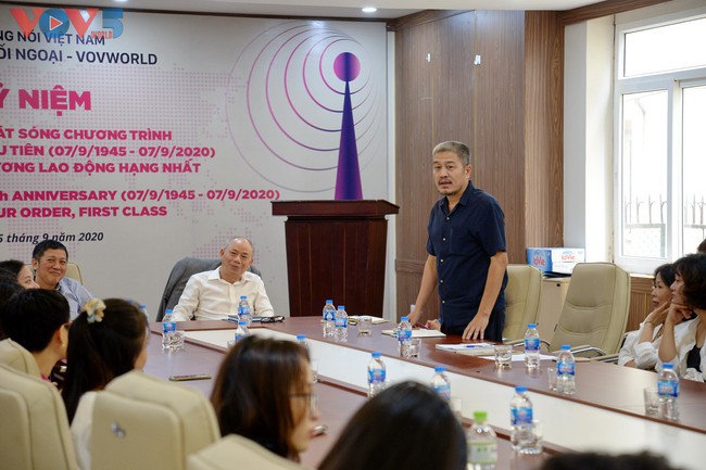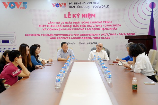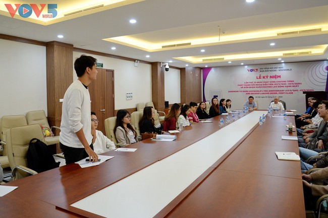 Phát biểu tại cuộc gặp, ông Nguyễn Tiến Long, trưởng Ban đối ngoại VOV5 đã giản lược quá trình 75 năm hình thành phát triển và xây dựng Ban Đối ngoại, nhấn mạnh xu thế truyền thông đối ngoại không ngừng phát triển cả về nội dung và hình thức trong kỷ nguyên 4.0. Ông cho biết, trong bối cảnh Việt Nam không ngừng tăng cường hội nhập trên trường quốc tế, đáp ứng như cầu đẩy mạnh truyền thông đối ngoại, Ban Đối ngoại VOV5 hiện đang phát sóng 13 ngôn ngữ tới nhiều vùng lãnh thổ, quốc gia trên thế giới. Từ năm 2012, website vovworld.vn đi vào hoạt động cũng góp phần không nhỏ vào việc đẩy mạnh truyền thông bằng nhiều hình thức, phương tiện tới độc giả, thính giả trên thế giới. Cũng trong buổi gặp, lãnh đạo các phòng của Ban Đối ngoại VOV5 cũng đã giới thiệu về việc sản xuất nội dung đầu vào, công tác biên dịch, giới thiệu về trang web vovworld, kênh tiếng Anh 24/7 và các chuyên mục mới của Ban... giúp các sinh viên hiểu hơn về mô hình, phương thức hoạt động của truyền thông đối ngoại của Ban Đối ngoại VOV5