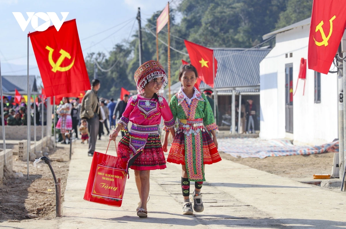 | Niềm vui của trẻ em ở điểm tái định cư Huổi Ké. |