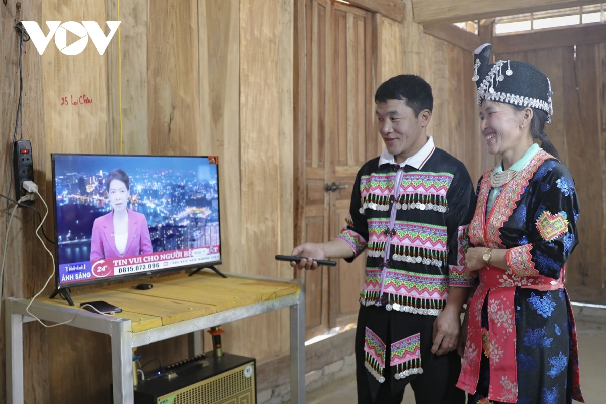 | Gia đình anh Sùng A Cho ở điểm tái định cư Huổi Ké phấn khởi về nơi ở mới có điện lưới quốc gia, có nước sạch, mạng Internet để cập nhật tin tức, học cách phát triển kinh tế. |