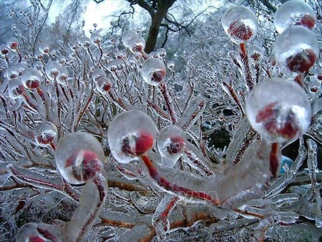 Những cành cây ngọn cỏ bị băng giá phủ kín mang lại một vẻ đẹp hiếm có. |