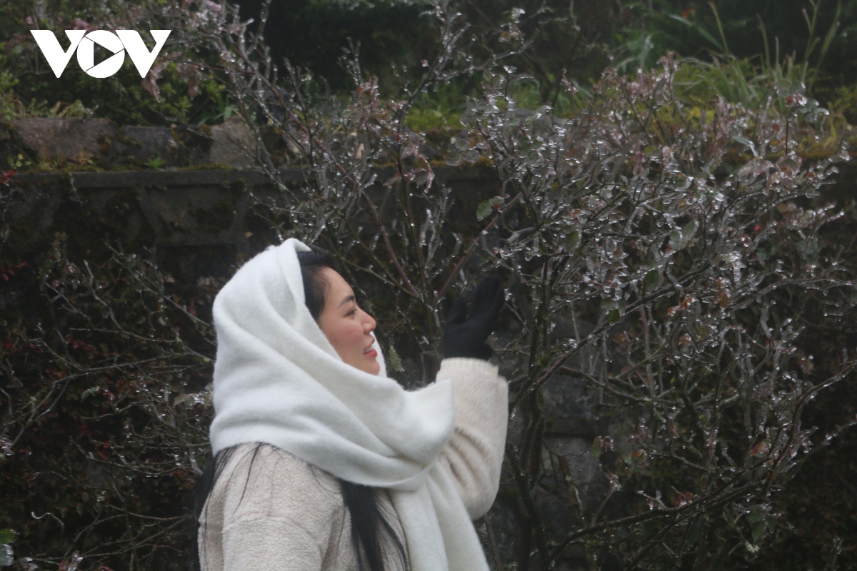 Khu vực này có độ cao gần 2.000 m so với mực nước biển. Càng về trưa, băng đóng càng dày hơn. Một số du khách nhanh chân đã bất chấp giá rét, tranh thủ cơ hội chụp nhanh những bức ảnh làm kỷ niệm.