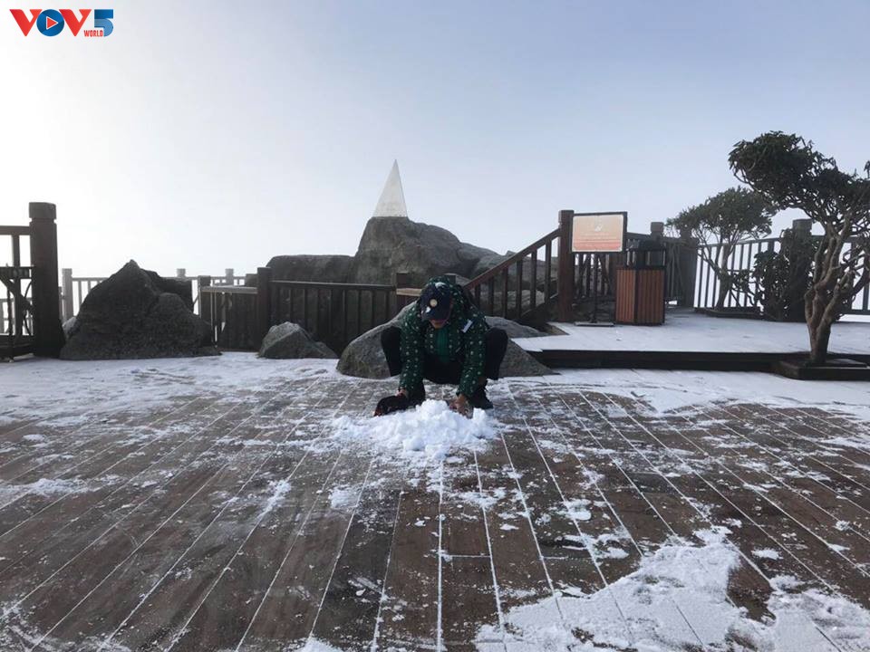 Theo các nhân viên khu du lịch Sun World Fansipan Legend, hiện tượng băng giá đã xuất hiện từ khoảng rạng sáng 17/1, và kéo dài tới tận 9h sáng. |