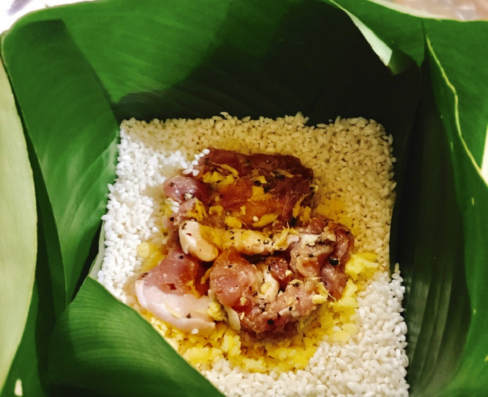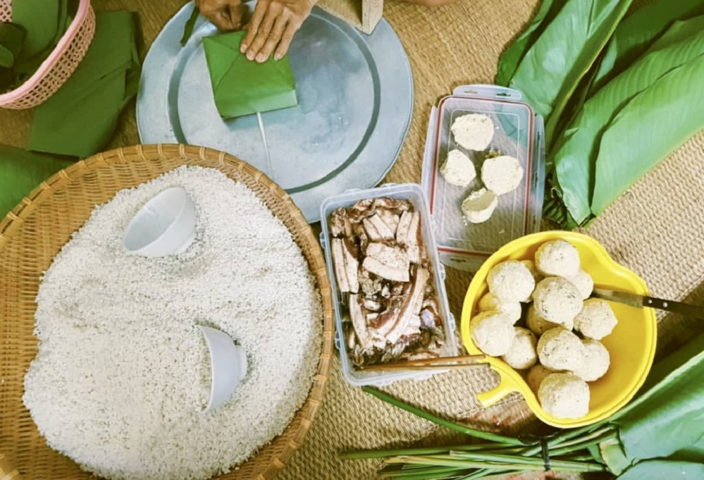 Phần nguyên liệu làm bánh gồm gạo nếp, đậu xanh, thịt lợn, tiêu, gia vị…