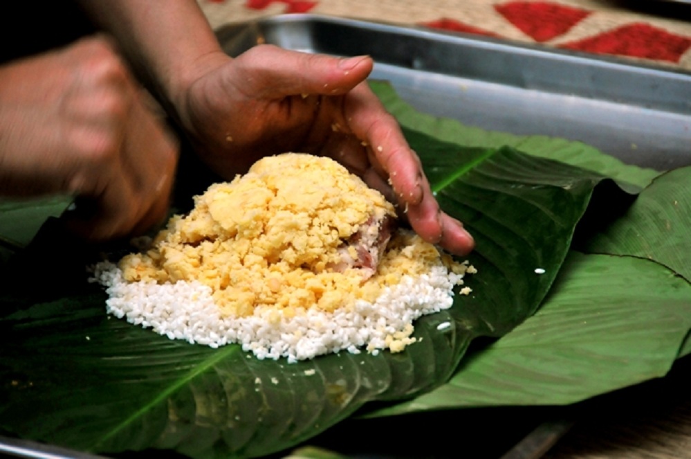 Thịt lợn kết hợp cùng đậu xanh và gạo nếp tạo ra món bánh cổ truyền này. Ảnh: truyenhinhdulich.vn