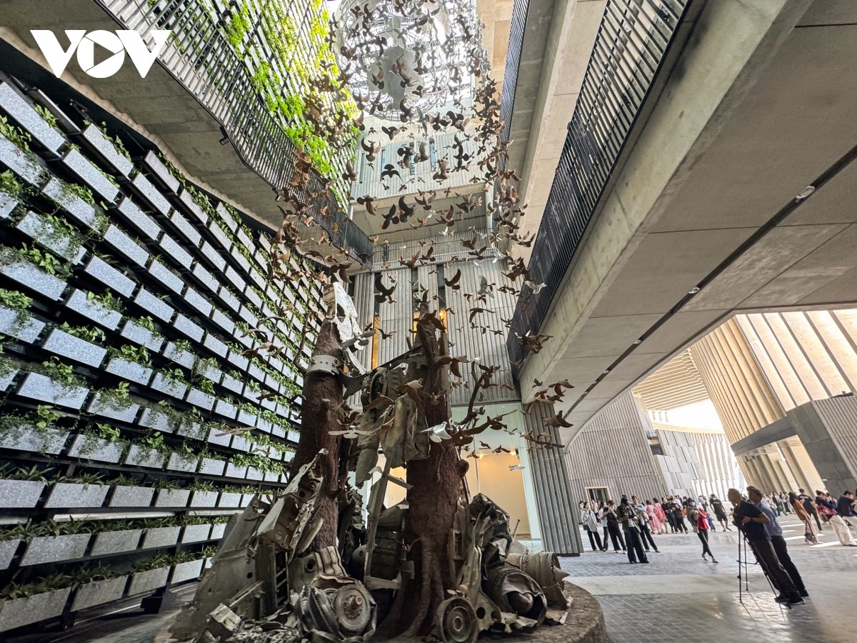 Một góc sắp đặt bên ngoài bảo tàng, thu hút nhiều khách tham quan. |