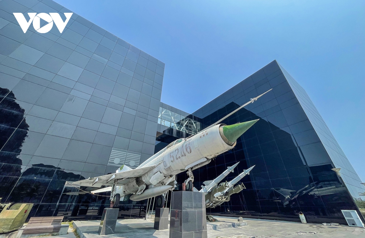 Không gian phía ngoài bảo tàng gây chú ý bởi những hiện vật cỡ lớn như bệ phóng tên lửa, pháo cao xạ, súng thần công,... và đặc biệt là khối than đá Antraxit được khai thác tại độ sâu âm 176m, trọng lượng khoảng 28 tấn, nhận kỷ lục Guiness Việt Nam là khối than kíp lê - Antraxit nguyên khối lớn nhất Việt Nam. |