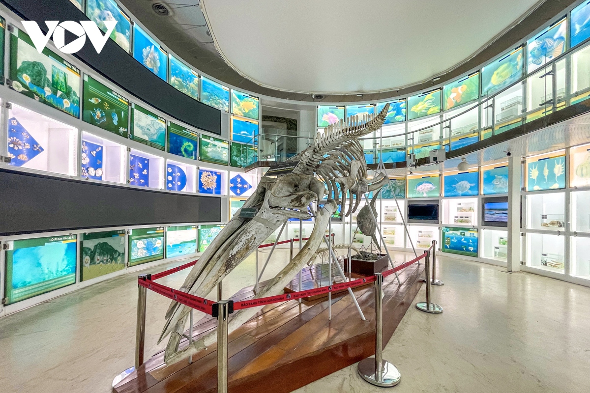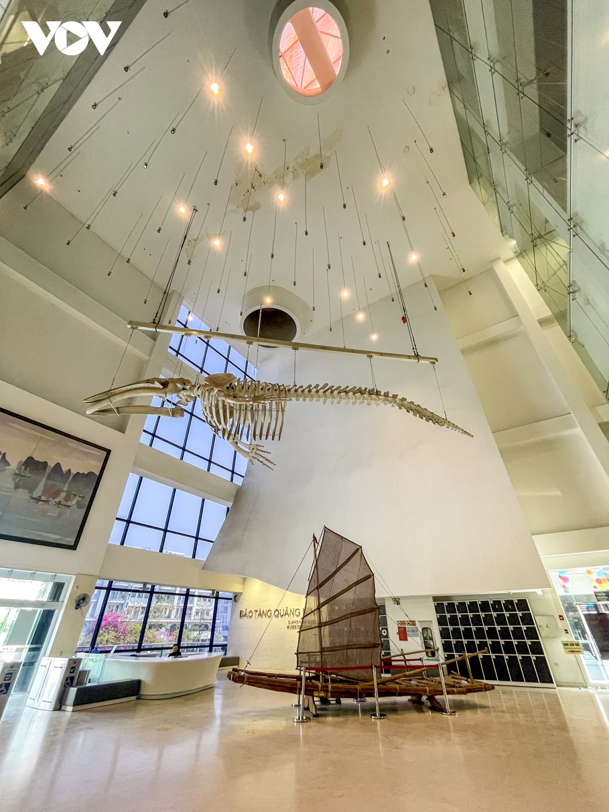 Hệ thống trưng bày trong bảo tàng rất phong phú, thực hiện công tác bảo tồn và giới thiệu lịch sử, văn hoá, thiên nhiên Quảng Ninh một cách khoa học, hiện đại, sinh động. Sảnh lớn gây ấn tượng với bộ xương cá voi hơn 20m được phát hiện tại đảo Ngọc Vừng năm 1994. |