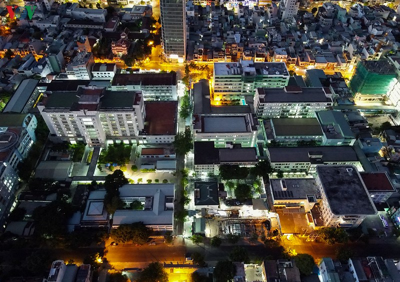| Bệnh viện C Đà Nẵng- 1 trong 3 địa điểm cách ly xã hội. Vào thời điểm đáng nhớ, bên trong bừng sáng ánh đèn. |