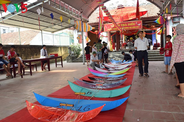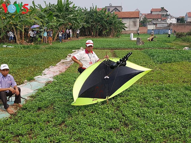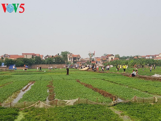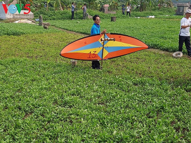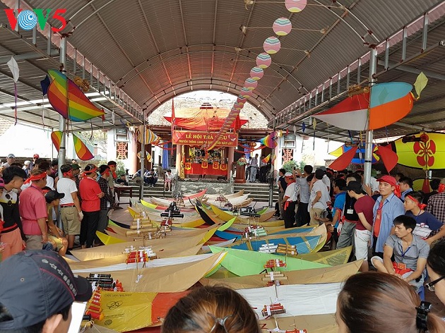 | Hội thi thả diều diễn ra trên cánh đồng trồng rau muống, trước Đền thờ Thần Châu thổ. |