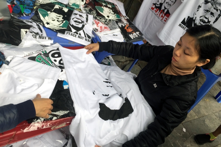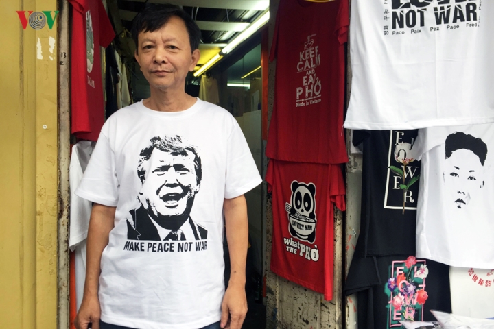 Nhiều chủ cửa hàng cho biết, những chiếc áo phông có hình Tổng thống Mỹ Donald Trump và Chủ tịch Triều Tiên Kim Jong Un bán chạy hơn hẳn những mặt hàng khác.