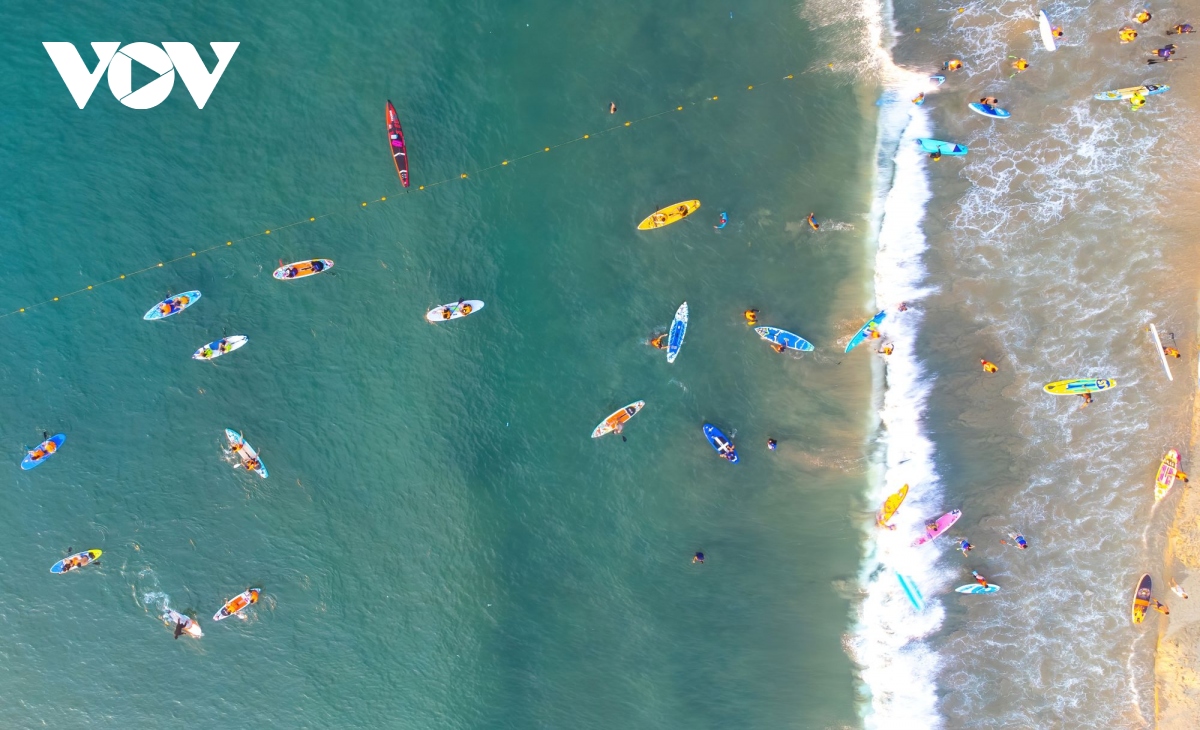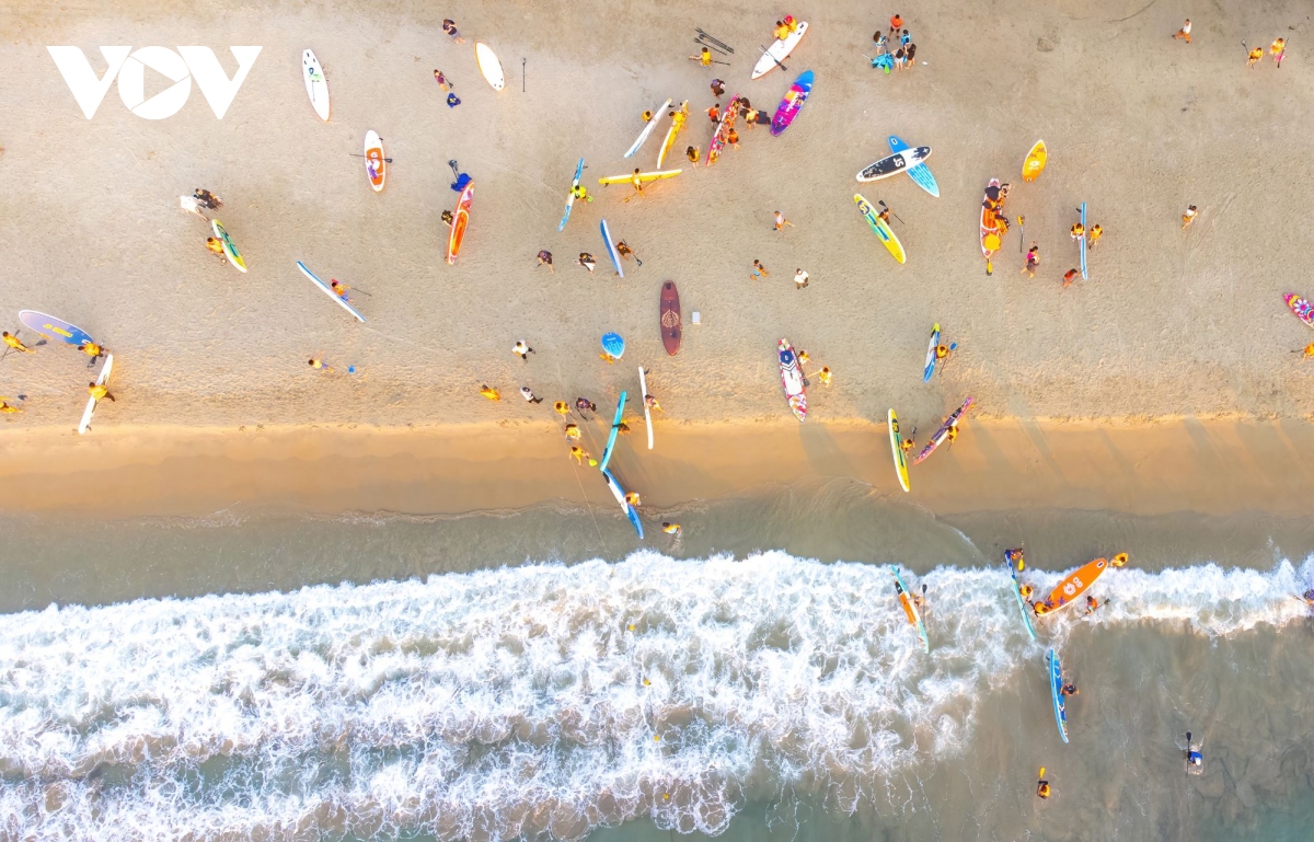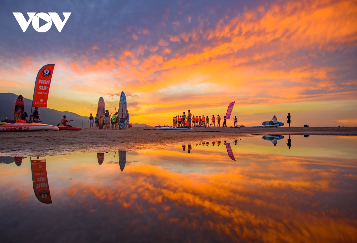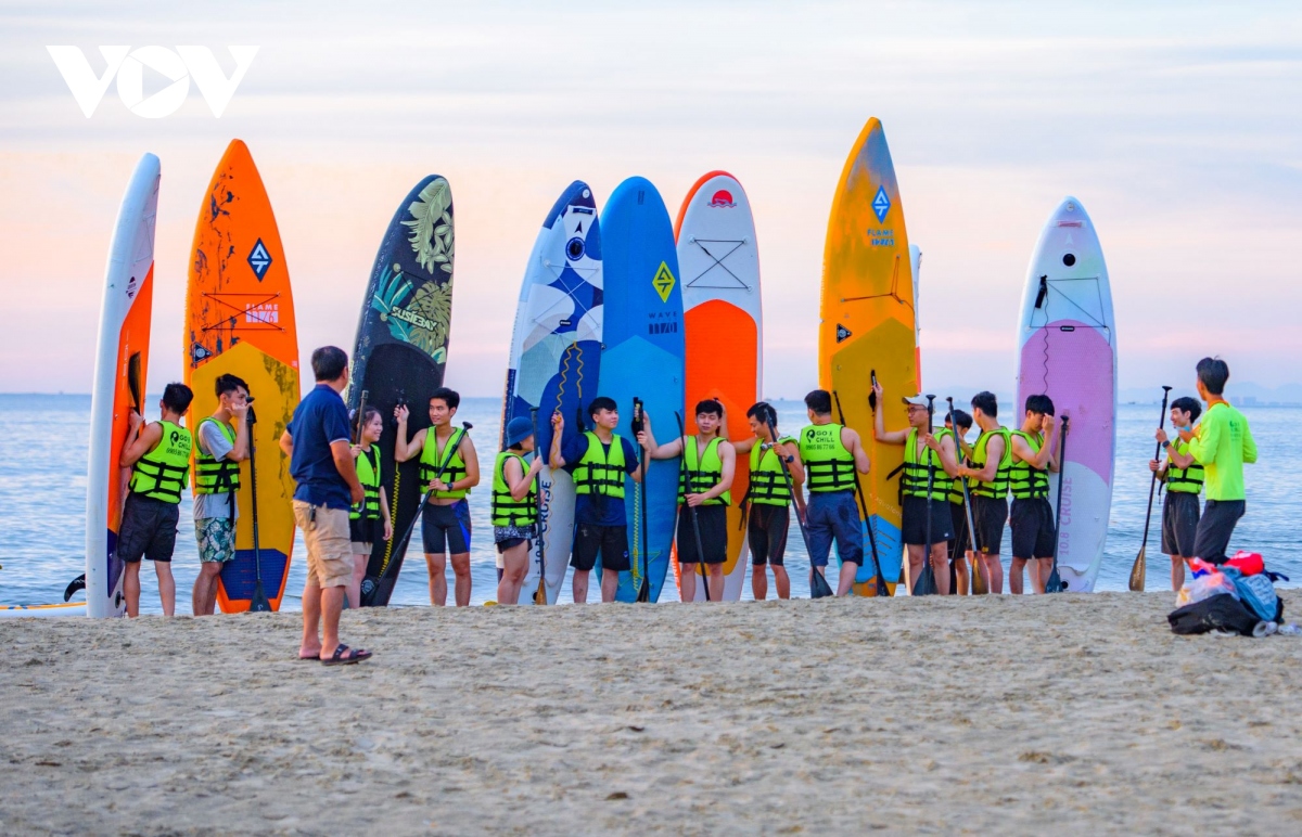 Nhiều người đến đây đón bình minh và trải nghiệm cùng hoạt động chèo Sup trên biển |