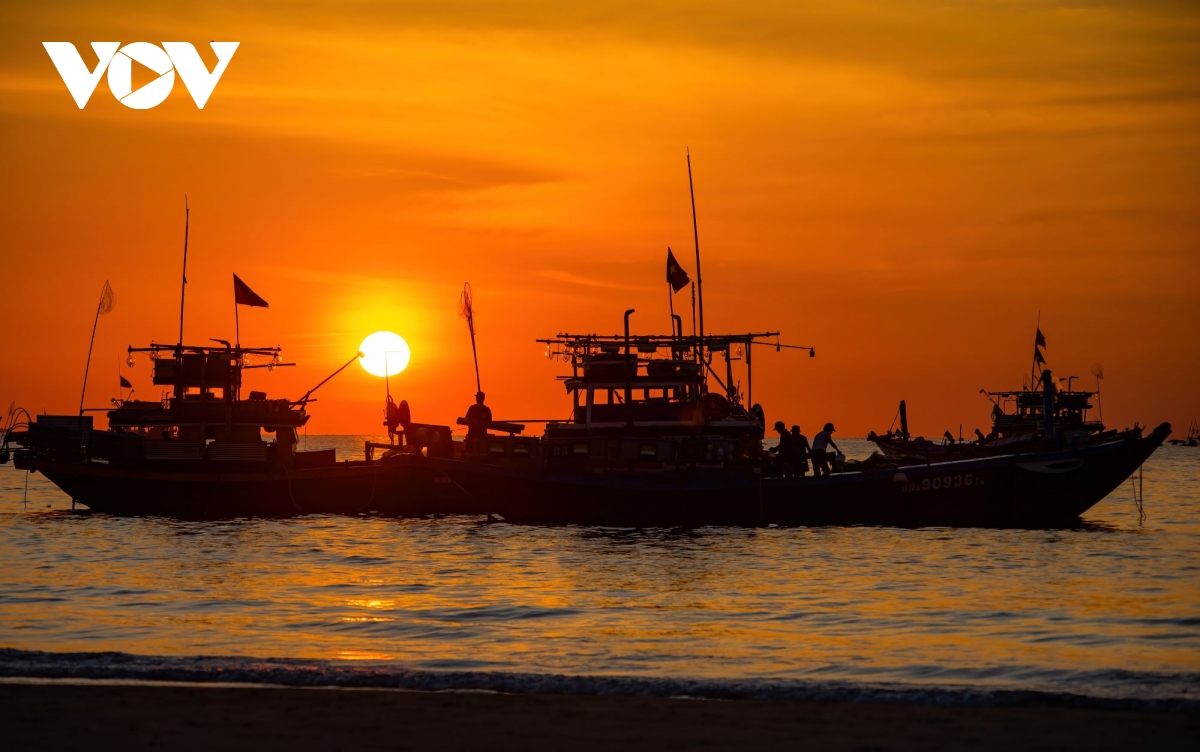 Ánh nắng bình minh hòa quyện vào những con thuyền xa xa tạo cảnh đẹp làm xao xuyến nhiều người |