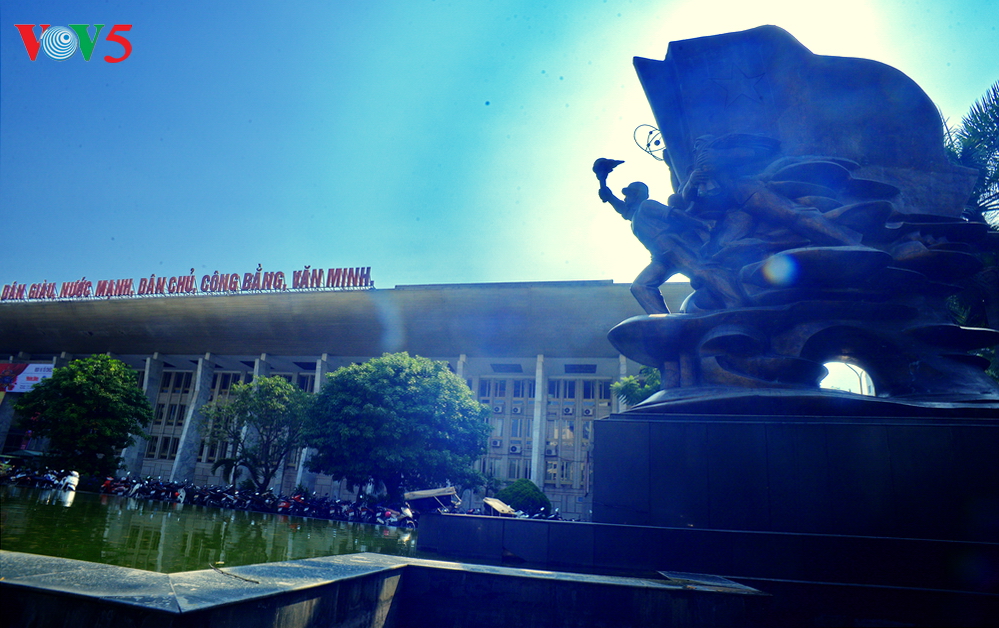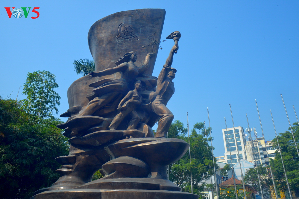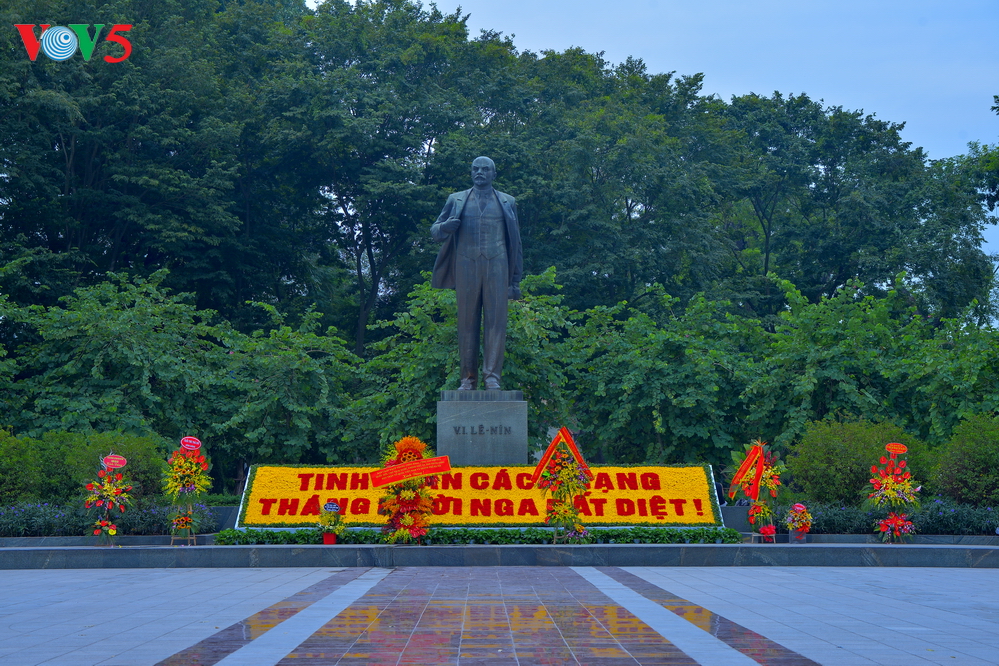 | Tượng đài Lenin bằng đồng cao 5,2 m được đặt trên bệ đá hoa cương cao 2,7 m, quay mặt ra đường Điện Biên Phủ, con đường ghi dấu chiến thắng lịch sử, “lừng lẫy năm châu, chấn động địa cầu” của nhân dân Việt Nam trước thực dân Pháp. |
