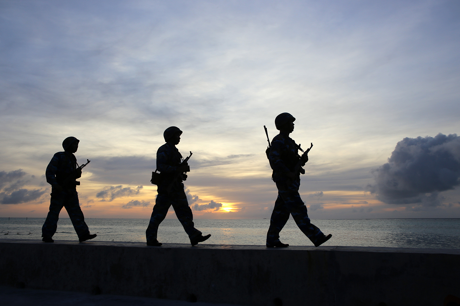 Chủ quyền biển đảo: Giới thiệu bản đồ “Tự hào biển đảo Việt Nam” với 33 lá cờ Tổ quốc từ 33 điểm đảo tại Trường Sa; 15 lá cờ Tổ quốc từ 15 Nhà giàn DK1 trên thềm lục địa phía Nam; cờ của các tàu làm nhiệm vụ trên biển. Tư liệu về chủ quyền của Việt Nam trên quần đảo Hoàng Sa. Tác phẩm: Cơn giông - Tác giả: Trần Thành. |