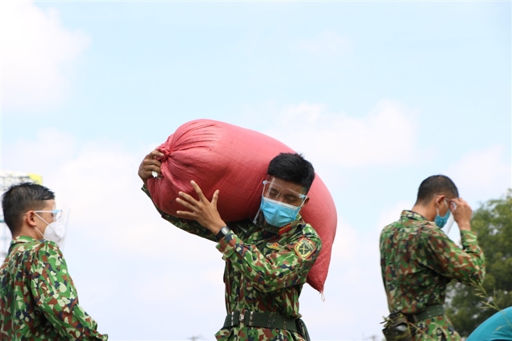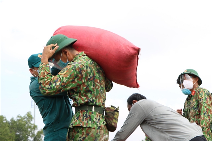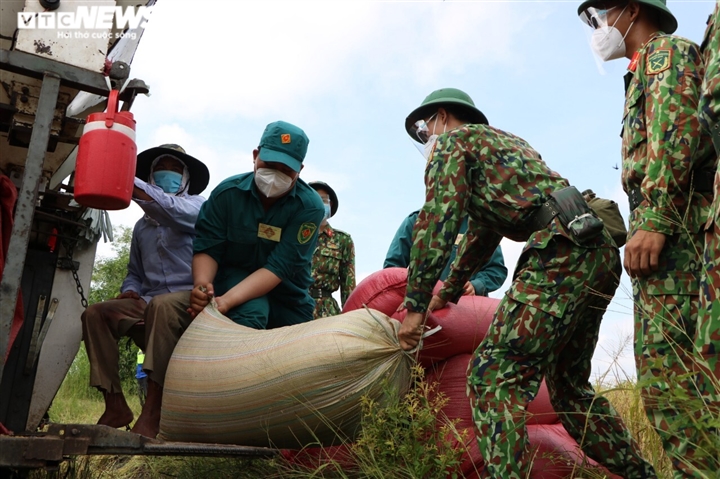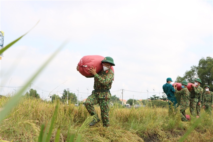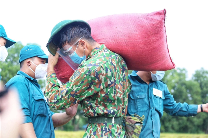 Hình ảnh các chiến sĩ trẻ không ngại nắng mưa, xông xáo trên đồng ruộng thu hoạch và khuân vác lúa giúp nông dân để lại ấn tượng đẹp, khó quên trong lúc dịch bệnh COVID-19 căng thẳng.