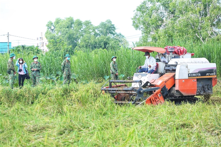 Ông Nguyễn Hồng Sánh, Chủ tịch Hội Nông dân thị trấn Tân Túc, huyện Bình Chánh cho biết, mỗi hecta thu khoảng 3,8 - 4 tấn lúa tươi, bộ đội và dân quân địa phương sẽ giúp dân vác lúa ra điểm tập kết và chở về nhà dân. "Trên địa bàn huyện Bình Chánh có 88 hộ dân đang trồng lúa diện tích khoảng 102ha. Với sự giúp sức của bộ đội, dự kiến trong 10 ngày tới, toàn bộ người dân sẽ thu hoạch xong vụ lúa", ông Sánh nói.