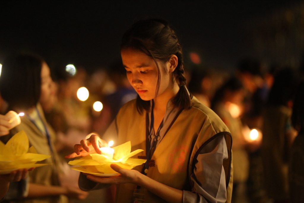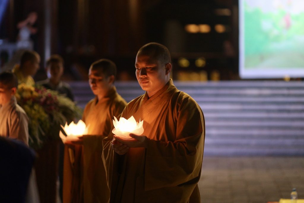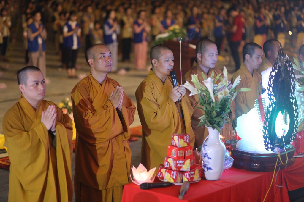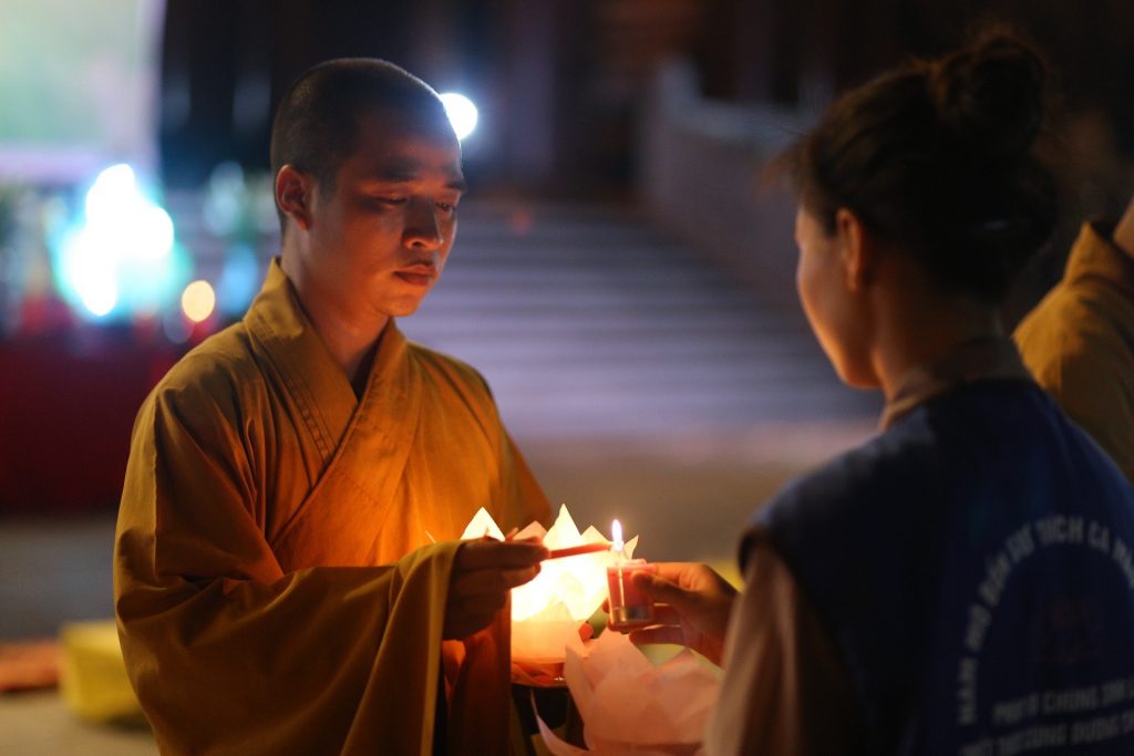 Cử hành nghi lễ truyền đăng cho các khoá sinh. 1.500 ngọn nến hoa đăng được thắp lên.