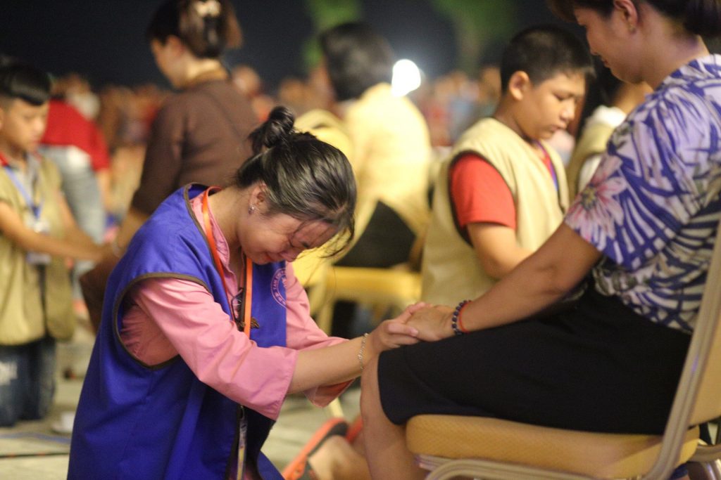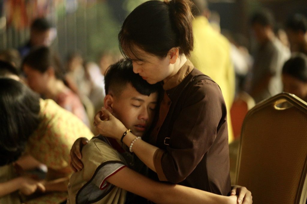 Những video clip xúc động, những câu chuyện ý nghĩa, những lời ca tiếng hát đong đầy yêu thương ca ngợi tình cảm gia đình, ơn giáo dưỡng của mẹ cha đã khiến các khoá sinh tham dự đêm hoa đăng nghẹn ngào, nức nở.